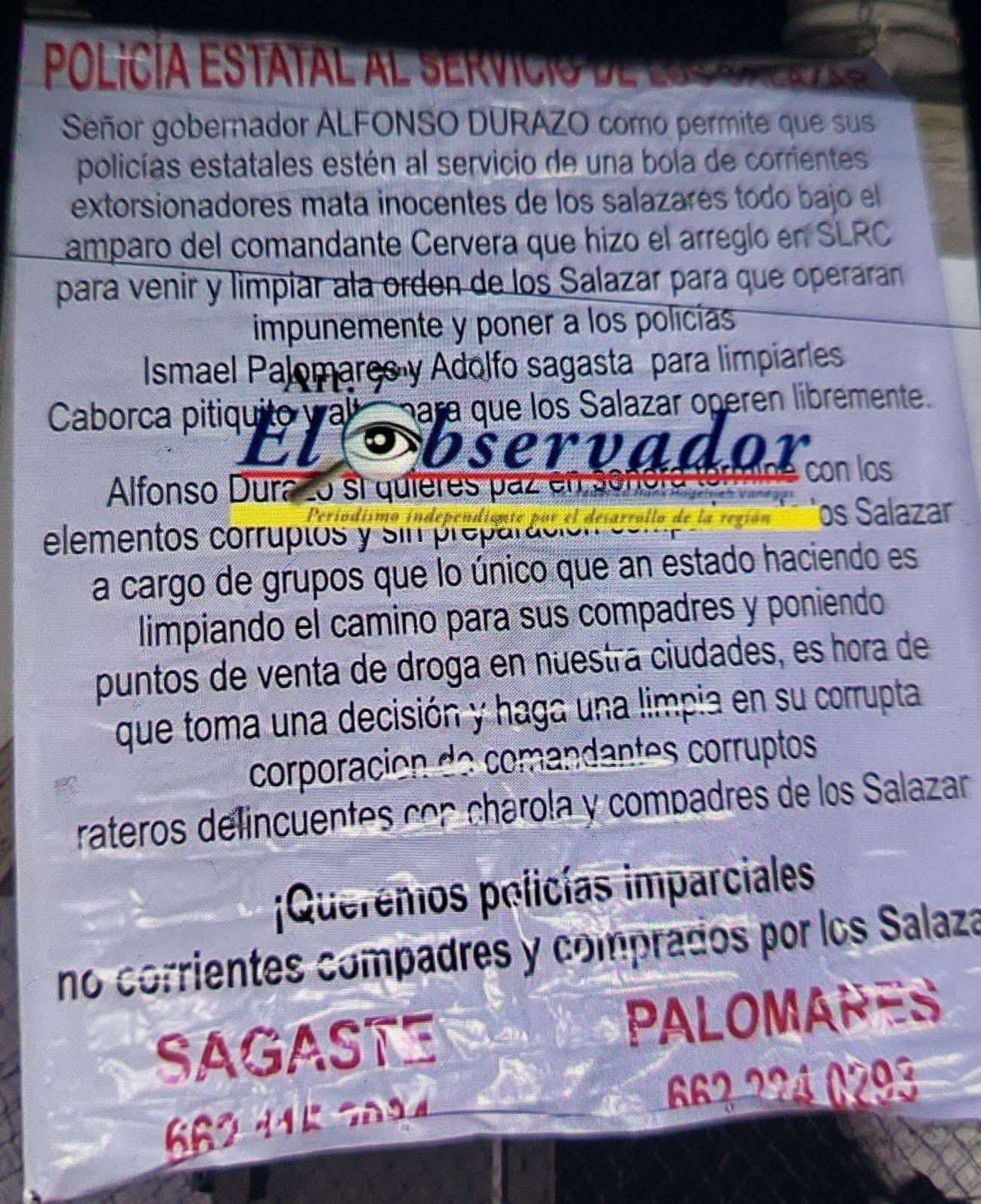 El mensaje que circula parece más una estrategia de guerra sucia que una denuncia legítima. Si alguien posee pruebas reales de colusión entre autoridades y crimen organizado, que las presente.